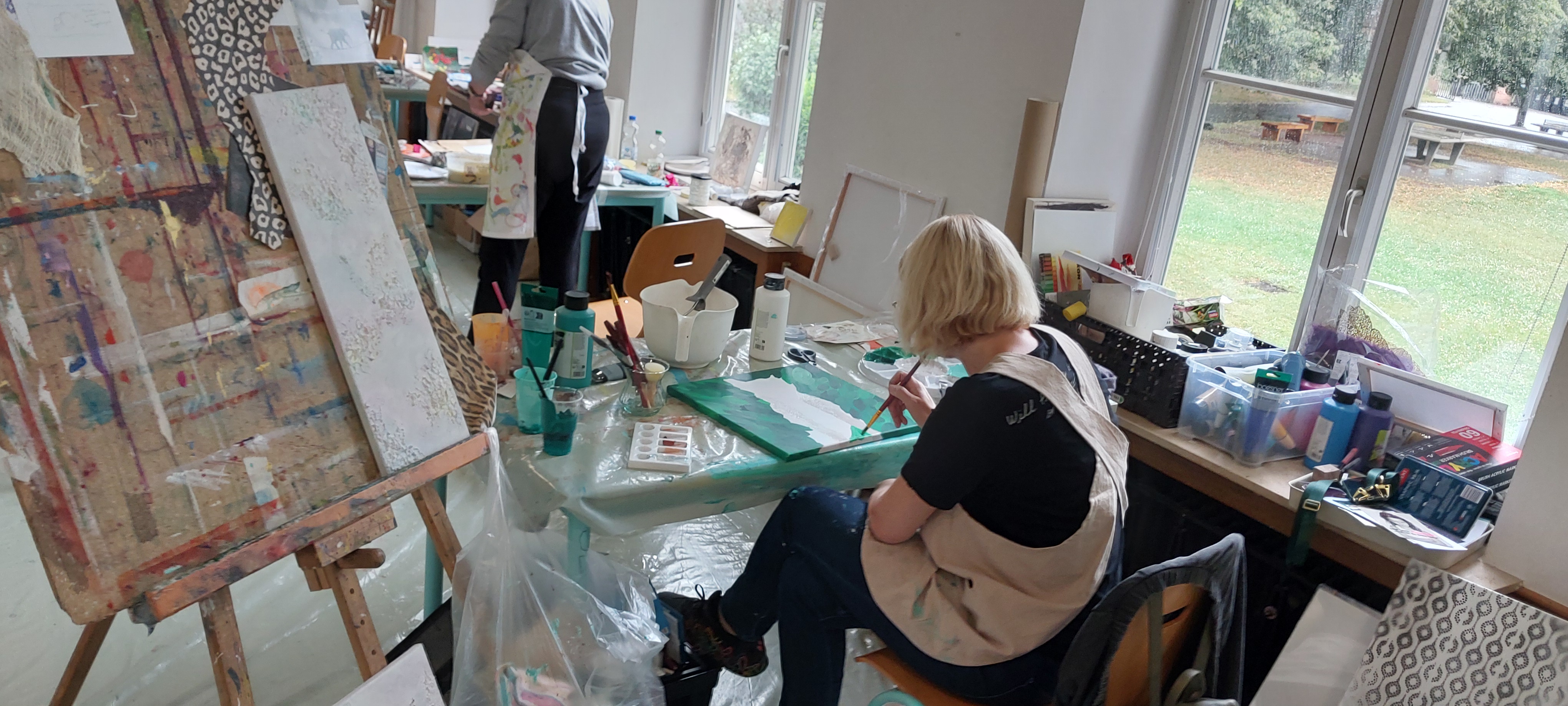 Dieser Malkurs eignet sich sowohl für Anfänger als auch Fortgeschrittene. Unter Anleitung, aber mit viel Freiraum für eigene Techniken, Ideen und Projekte, entstehen in freier Acrylmalerei und Mischtechniken gemalte, gewischte, gespachtelte oder auch gesprayte, überwiegend abstrakte Bilder oder Werke. Ebenfalls wird der spannenden p.a.p.p.Art, Collage und Decollage sowie der Struktur und dem Rakeln Zeit eingeräumt. Wir kombinieren Techniken und kreieren Unikate. Jede/r kann die Techniken und Ideen ausprobieren und vertiefen, die ihn am meisten faszinieren. Im Laufe der Woche werden unterschiedliche Herangehensweisen an ein Bild erarbeitet. Gestaltet wird mit Pinseln, Walzen, selbst hergestellten Druckkörpern, Fensterwischern unter Anwendung von Acrylfarben, Lacken und Sprays. Ziel ist es, die eigene Kreativität auszuleben, einfach mal loszulassen und sich in den Prozess zu begeben. Ohne Druck, nur mit Muße und Freude. Erfolge werden garantiert. Gestaltet werden kleine und großformatige Kunstwerke, die ggf. gespickt werden mit eigenen (s/w-)Fotos, Postkarten oder interessanten Ausrissen aus Magazinen und Zeitungen. Ebenso verarbeiten wir interessante Kartonagen, geschöpfte schöne Papiere, Stoffe, Tapetenreste, Geschenkpapiere und mehr.