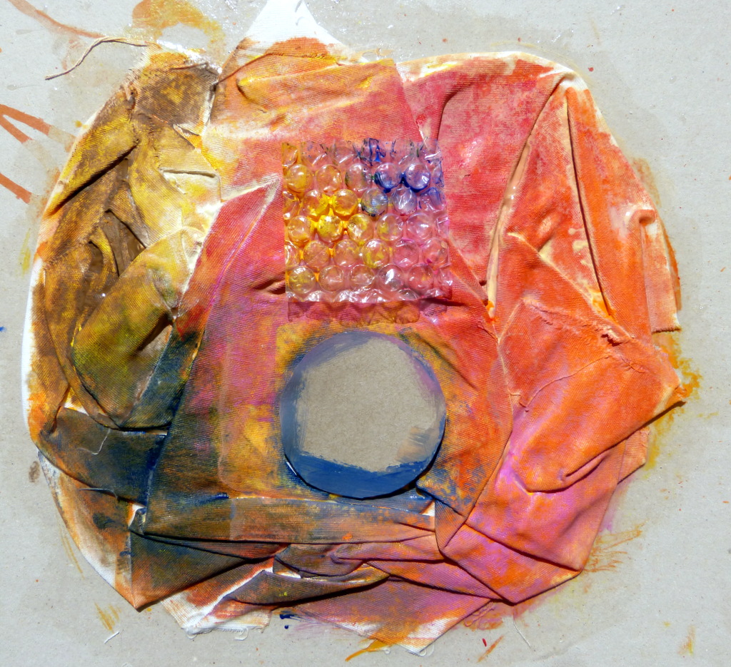 Wir machen aus Stoff und Binder kleine Druckstöcke, mit denen wir wiederrum