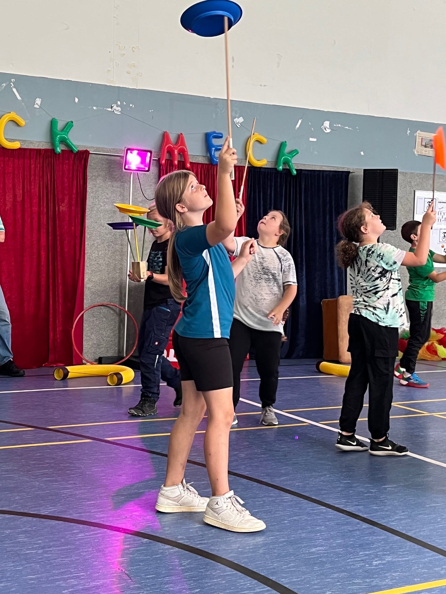 Wie wird das wohl gemacht? Natürlich wird nicht nur trainiert oder geübt. Im Vordergrund steht der Spaß, denn schließlich sind Ferien! . Ihr werdet Diabolos und Devilsticks in die Luft werfen, auf einem Hochseil balancieren und Einrad fahren. Ihr lernt jonglieren mit den unterschiedlichsten Geräten, oder sogar auf einer dicken Kugel oder Tonne laufen. Vielleicht schlüpft ihr auch in die Rolle von Clowns. Auf alle Fälle könnt ihr vieles ausprobieren und vielleicht sogar als Abschluss zusammen eine spektakuläre Abschlussshow auf die Beine stellen. Ihr seid interessiert? Na, dann kommt zum Zirkusprojekt HECK MECK!
