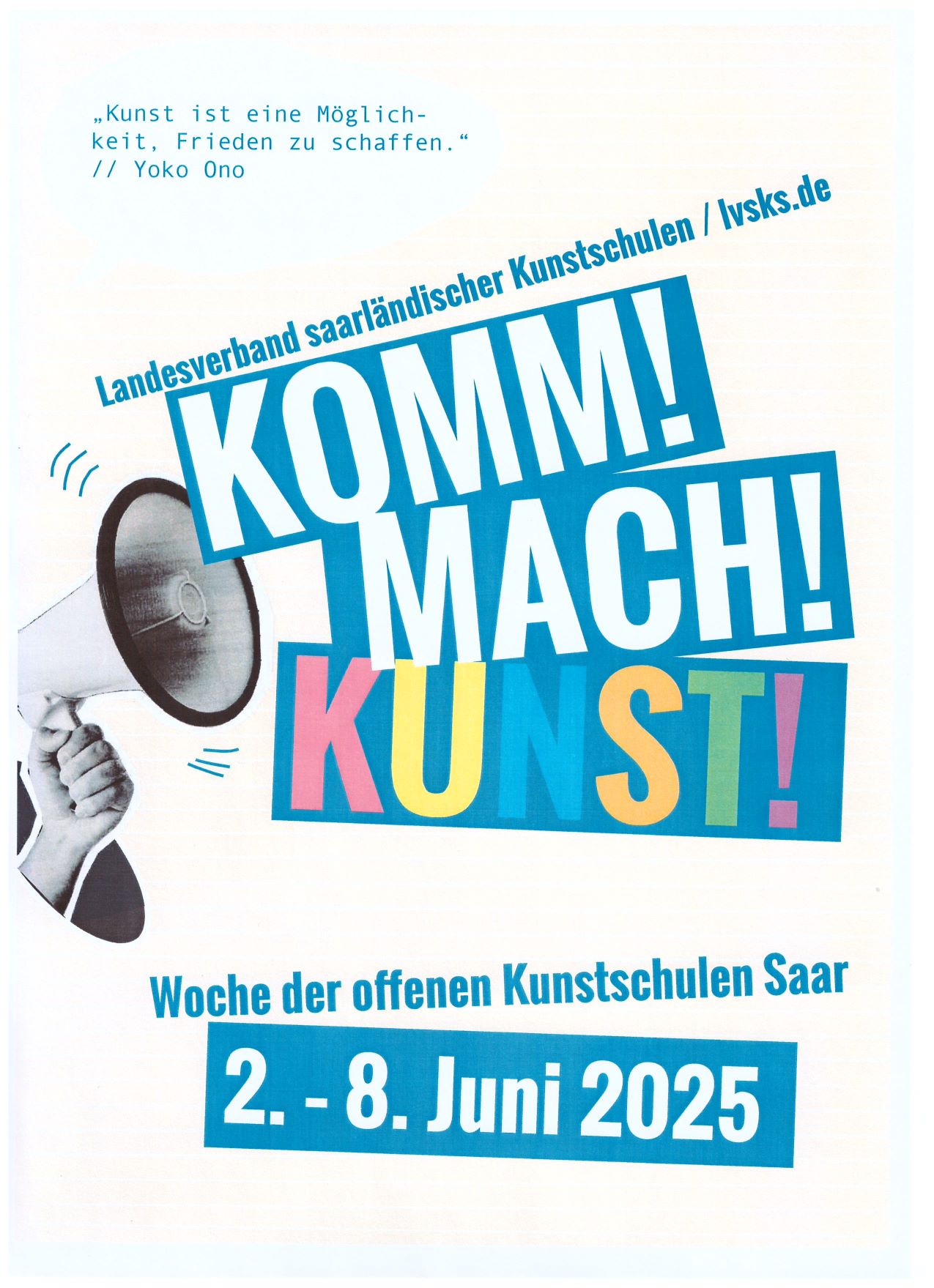 Der Landesverband Saarländischer Kunstschulen veranstaltet eine Woche der Kunstschulen. Saarlandweit werden Veranstaltungen angeboten, bei denen immer Mitmachen möglich ist.