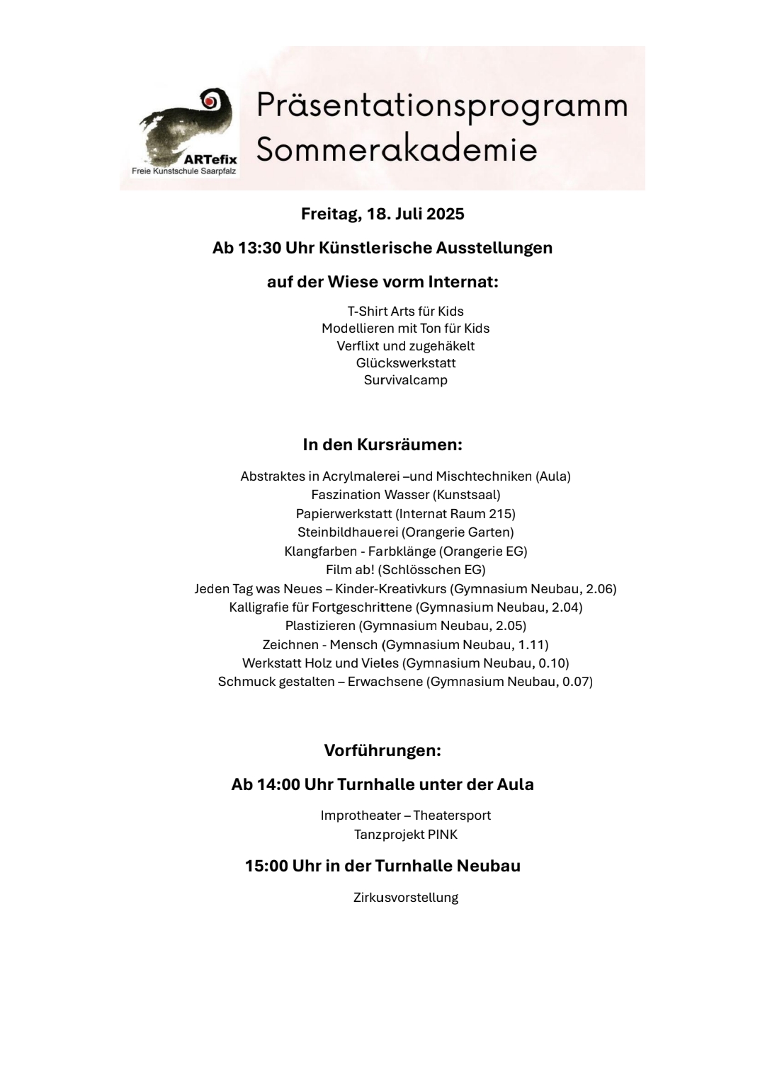 Ab 13:30 Uhr Künstlerische Ausstellungen