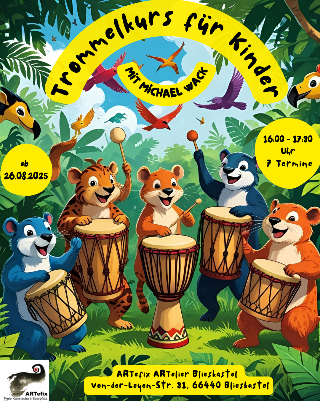 Am 26.08.2025 16 Uhr startet der neue Trommelkurs in unseren neuen Räumen Von-der-Leyen-Str. 31, Blieskastel.